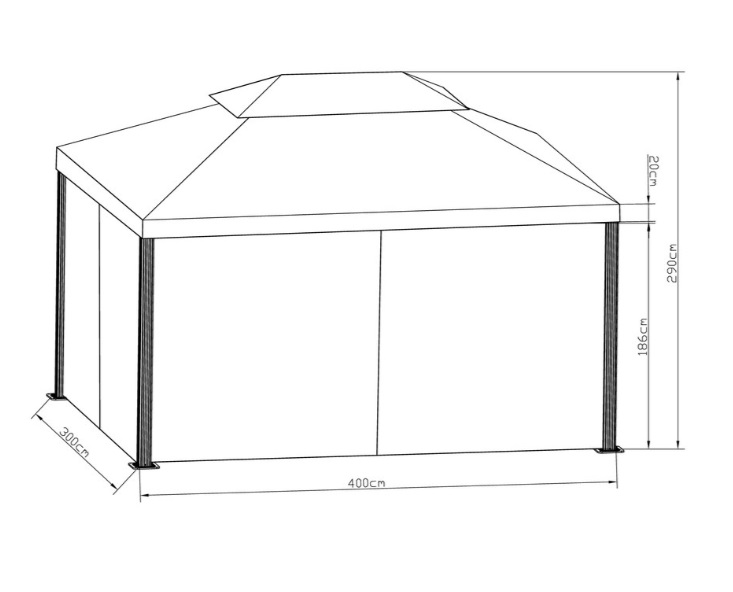 Данный комплект хорошо подойдёт и для проведения небольших торжеств и для повседневного использования. Крыша и шторы способны защитить от солнца и ветра. Крыша, благодаря вентиляционному клапану, хорошо проветривает шатёр.