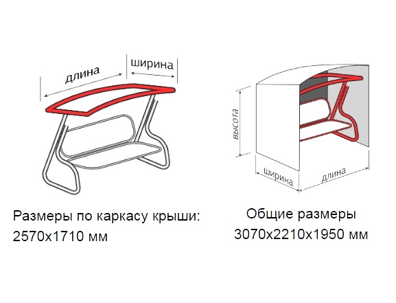 Ткань обладает следующими свойствами: водонепроницаемостью; устойчивостью к загрязнениям; повышенной прочностью; износостойкостью; термостойкостью. Данная ткань используется при производстве курток, палаток и другой продукции, предназначенной для защиты человека на открытом воздухе. Антимоскитная сетка удобно застегивается на молнии. Тент крепится к качелям при помощи продольных и поперечных кулисок, которые надежно закрепляют тент на качелях.